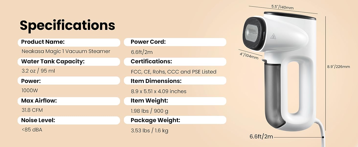 Say goodbye to bulky irons and hello to the next generation of garment care! The Neakasa Magic 1 Vacuum Steamer combines advanced suction technology, precision steam, and dual fabric modes to give your clothes a smooth, dry, and ready-to-wear finish in seconds.